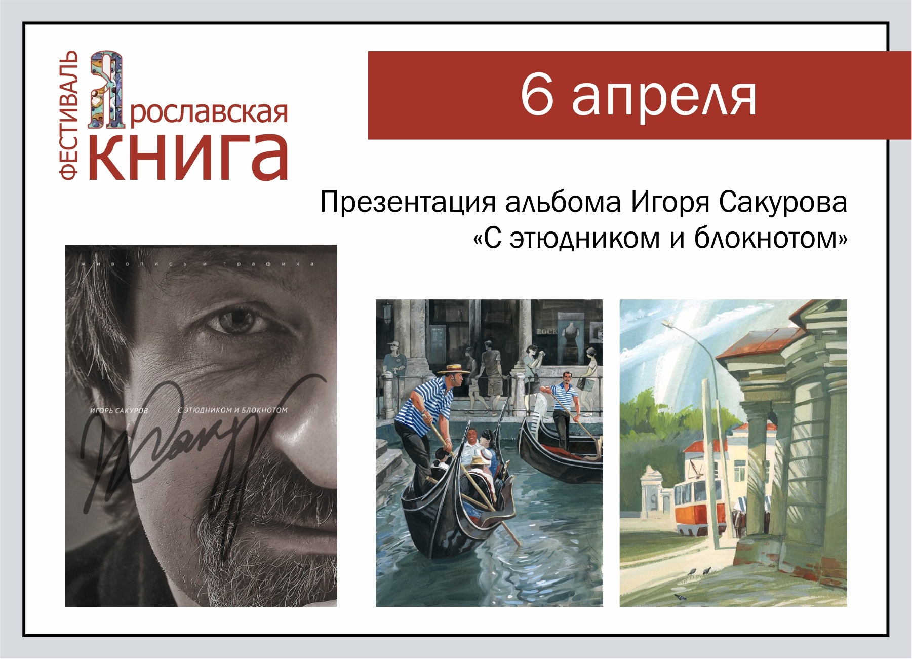 В программу фестиваля «Ярославская книга» добавилось новое мероприятие. Гостям будет представлен арт-бук художника Игоря Сакурова, в котором собраны живописные и графические работы разных лет. Это пейзажи, привезенные из путешествий, необычные натюрморты, портреты, а также наброски и эскизы